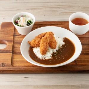 ランチタイム限定で、特製手作りカレーをご提供します!スパイスと食材が織りなす深いコクと豊かな風味が楽しめる自慢のカレーです。トッピングには、ぷりぷりのシュリンプフライや、瀬戸内産の大粒牡蠣を使用した牡蠣フライをご用意。どちらもカレーとの相性抜群です。